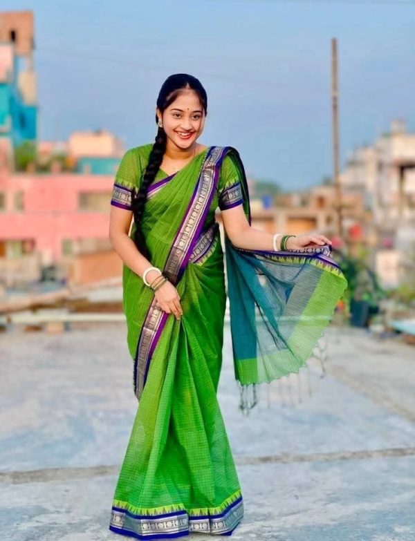 নিউ প্রিমিয়াম কোয়ালিটি গ্রীণ কালার সুতি শাড়ি, সাথে ব্লাউজ পিছ ফ্রি