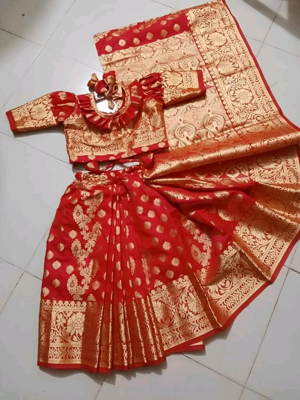 বেবী রেডি শাড়ি লাল কালার কাতান baby ready saree red colour