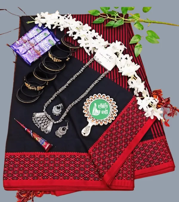 Tangail Tat Saree & Best Gift for your Friends and Family & Jewellery Combo Set. gomboj pair
