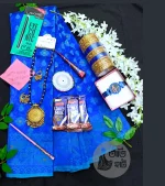 Best Gift for your Friends and Family half silk saree & Jewellery Combo Set. blue. jamdani