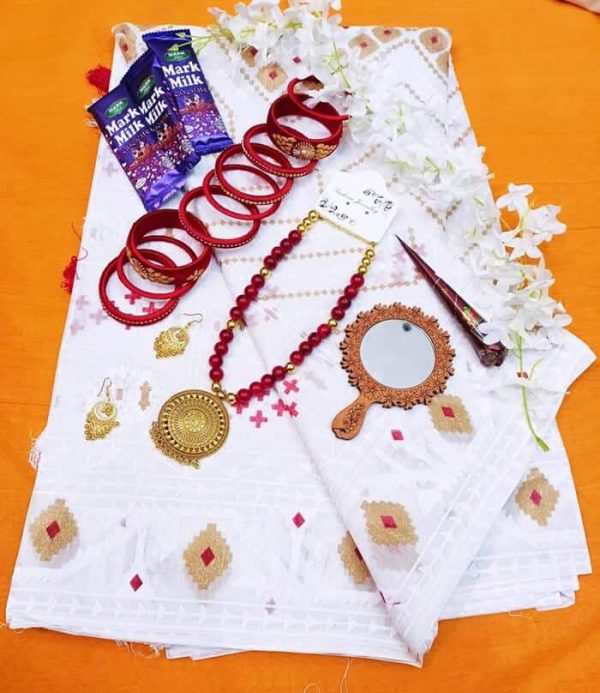 Half Silk Jamdani Saree Combo Package. for Gift every hour