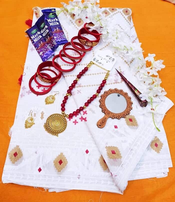 Tangail Tat Saree & Best Gift for your Friends and Family & Jewellery Combo Set. gomboj pair