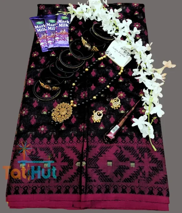 Tangail Nakful Jamdani saree Combo Packag For Gift. black color