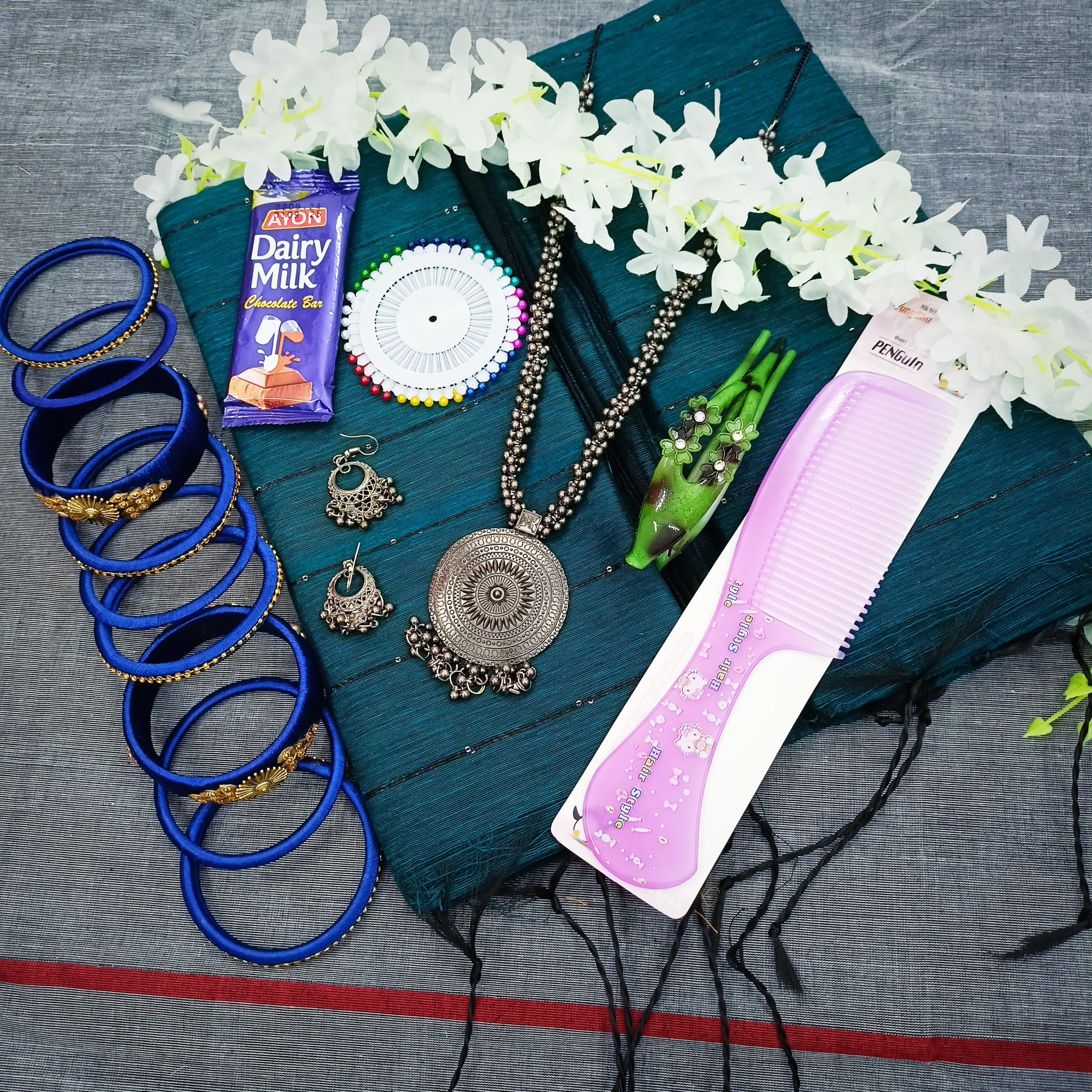 seagreen half silk saree combo package সিগ্রীণ চুমকি শাড়ি কম্ভো প্যাকেজ